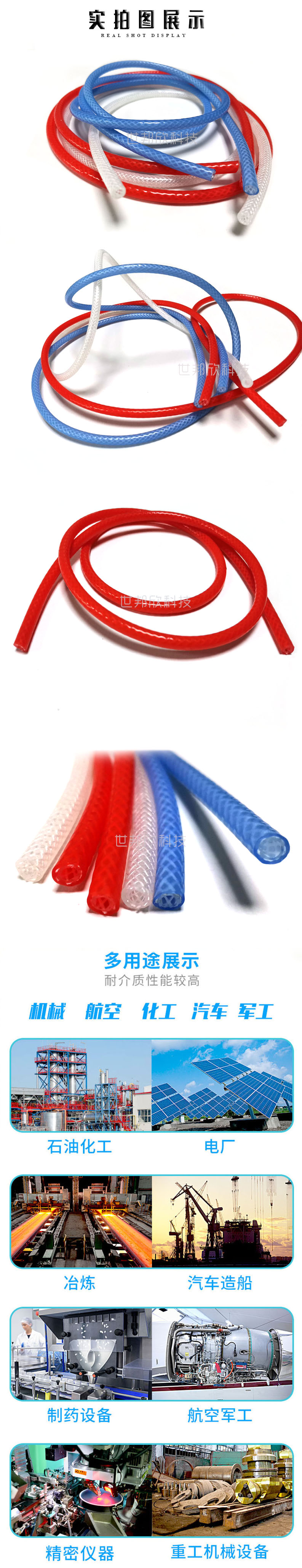 【硅膠編織管用途】:石油化工,電廠,冶煉,汽車造船,制藥設(shè)備,航空軍工,精密儀器,重工機械設(shè)備。